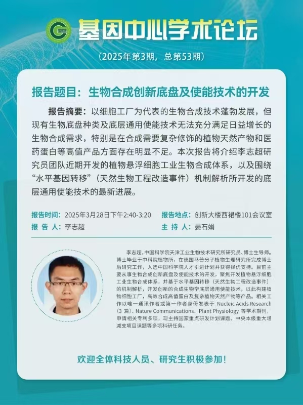 【学术论坛】 基因中心学术论坛(第53期):生物合成创新底盘及使能技术的开发