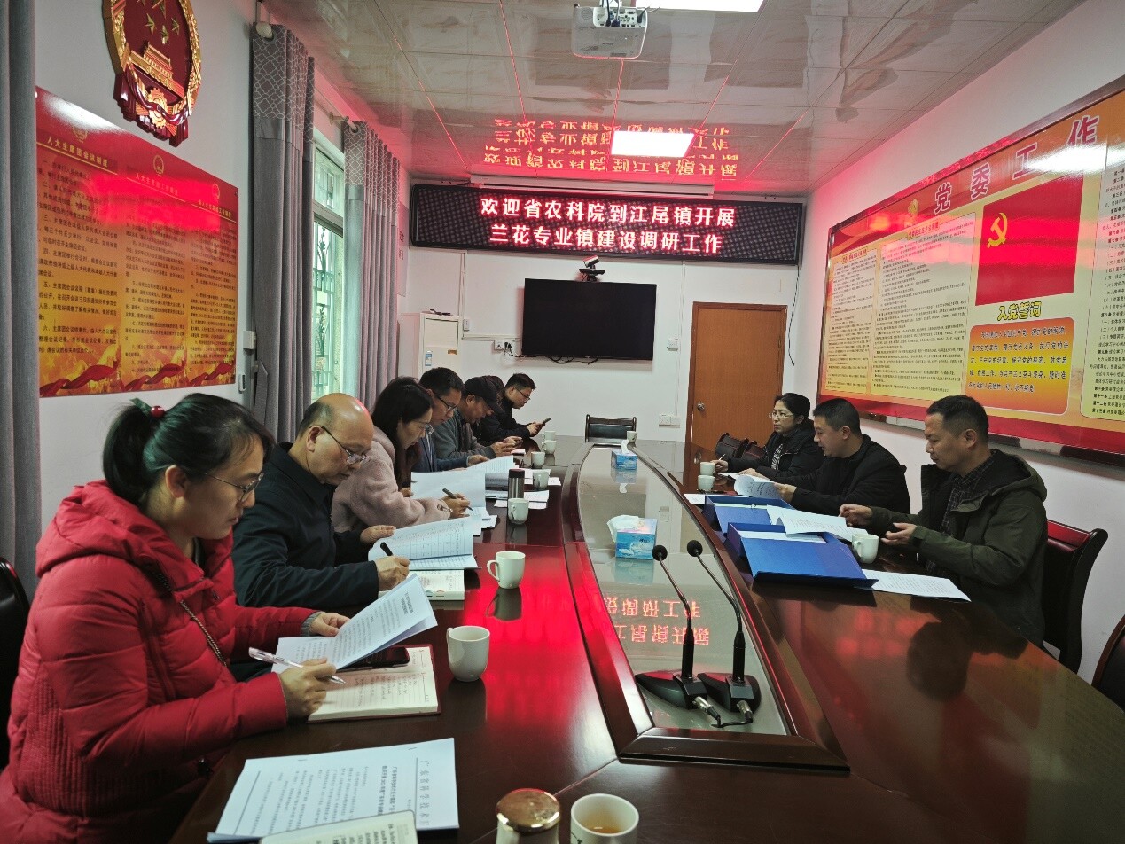 下午,调研组一行前往江尾镇政府,与江尾镇党委副书记、镇长刘淮等相关负责人进行对接交流,了解镇村产业发展现状和规划。通过调研,详细了解了当地兰花、九仙桃、三华李、蔬菜等等特色产业种植面积、技术需求、品牌销售、联农带农等基本情况,并与当地镇村干部共商科技支撑初步方案。杨凤玺、黄广艺简要介绍了足球博彩平台 服务“双百行动”部署安排,表示环艺所高度重视科技支撑“百千万工程”工作,希望通过调研交流,立足江尾镇兰花特色产业基础以一二三产业融合发展为核心,以质量兴农、品牌强农、绿色兴农、科技富农为方向,编制专业镇规划,打造专业镇的亮点,推进县促镇带村。双方表示,要进一步发挥省农科院科技成果和人才资源,针对产业发展难点凝练项目,争取省市相关部门支持,加大投入力度,打造科技合作亮点工程,确保各项工作落细落实。