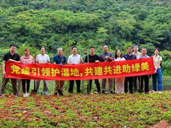 为加强党建与业务深度融合,充分发挥党建引领在绿美广东生态建设中的重要作用,7月22日上午,院环艺所水环境修复研究室党支部与省林科院生物多样性保护研究所党支部、西江所党支部联合开展“党建引领护湿地,共建共进助绿美”主题党日活动。院环艺所党总支书记姚汉年、省林科院生物多样性保护研究所所长兼支部书记蔡坚、西江所所长兼支部书记马青,各支部党员及科研骨干共20余人参加。
