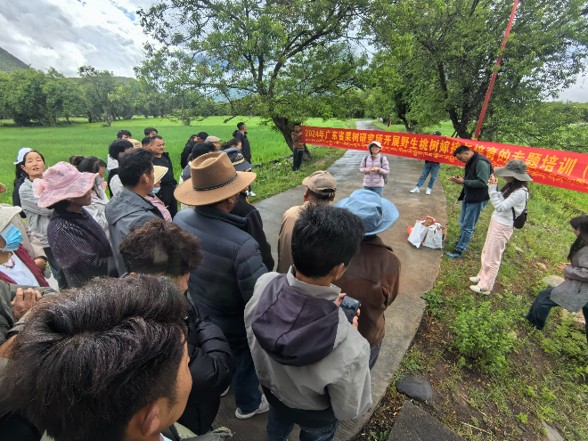 近日, 2024年穗波科技合作活动周在林芝市波密县启动,在技术支援成果展示环节,果树所常晓晓副研究员现场讲解了果树所承担的穗波科技帮扶项目取得的成果,得到与会领导与嘉宾的高度认可。活动周期间,果树所联合波密县农技推广站共同在倾多镇巴康村组织了桃树嫁接改良技术培训班,共有40多名当地果农参与,常晓晓副研究员深入田间地头,与果农面对面交流,详细讲解了桃树嫁接的关键技术和操作要点。通过现场演示和互动教学,果农们不仅学到了理论知识,更掌握了实际操作技能。