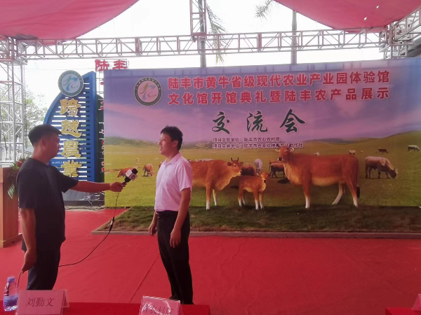 会上,孙建新向政商各界人士介绍了动科所在陆丰市黄牛省级现代农业产业园申报及全产业链建设中开展的一系列科技支撑工作,同时,表示动科所将在陆丰市“百县千镇万村高质量发展工程”中继续围绕振兴陆丰黄牛产业提供全方位技术支持服务,进而推动当地黄牛产业高质量发展。刘亮强调了黄牛产业在当地农业产业中的重要地位,高度赞扬了省农科院在当地各个农业产业发展中提供的科技帮扶作用,并对动科所的辛勤付出表达感谢。会后,孙建新接受了陆丰市广播电视台的专访,就如何落实好省委1310部署,如何开展好百县千镇万村高质量发展工程,如何推动农业科技助推乡村振兴建言献策。