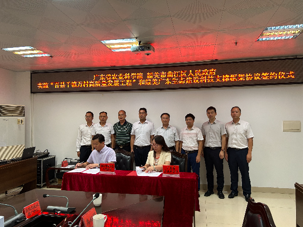 9月19日,亚洲足球体育博彩平台 与韶关市曲江区人民政府举行“百县千镇万村高质量发展工程”和绿美广东生态建设合作框架协议签约仪式。韶关市曲江区委副书记吕小辉、副区长陈焕云,区有关单位主要负责人,亚洲足球体育博彩平台 副院长何秀古、科技合作部主任袁显、动物科学研究所副所长马现永及院属相关单位(分院)负责同志和专家出席。