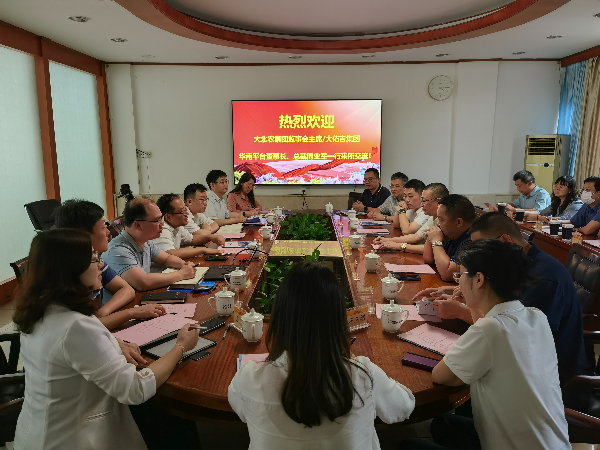 4月29日下午,大北农集团监事会主席/大佑吉集团华南平台董事长、总裁周业军一行7人来足球博彩平台 开展合作交流。足球博彩平台 党委书记邓诣群率领院办公室主任陈道明,动科所所长罗成龙及班子成员、动卫所所长孙铭飞,以及动科所、动卫所相关部门负责同志及专家等16人在动科所会议室参加座谈交流。