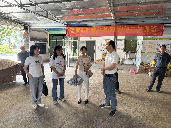 培训结束后,特派员团队在梅径村主任罗焕庆陪同下前往茶叶加工车间和种植基地现场进行技术指导,指出茶树在当下修剪、灌溉、施肥、采摘和加工等环节存在的问题并提出有效建议。在参观广东德天下酿酒有限公司时,范秋丽对酒渣发酵后的副产物在畜禽养殖中的应用提出了可行性建议。随后在东水镇,范秋丽与副镇长陈雄略、深圳福田区驻大田村第一书记等进行了深入交流,详细了解当地畜禽养殖现状和技术需求,重点围绕畜禽粪污资源化利用、乳鸽科学养殖等关键技术提供了专业指导下一步,动科所将充分发挥科技优势,持续为东水镇生态养殖发展提供技术支持。