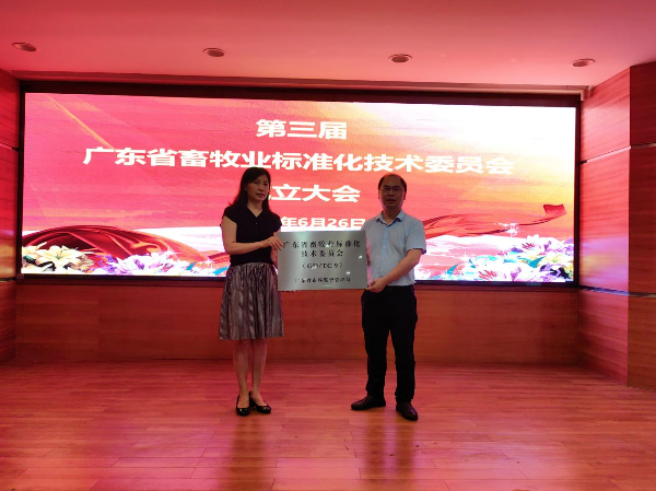 会上,梁雪梅宣读了《广东省市场监督管理局关于批准成立广东省畜牧业标准化技术委员会(第三届)的通告》并向省畜牧业标委会进行授牌。第三届省畜牧业标委会由35名委员组成,其中罗成龙任主任委员,李跃龙、王刚任副主任委员,王丽任秘书长,蔡更元任副秘书长;秘书处承担单位为亚洲足球体育博彩平台 动物科学研究所。