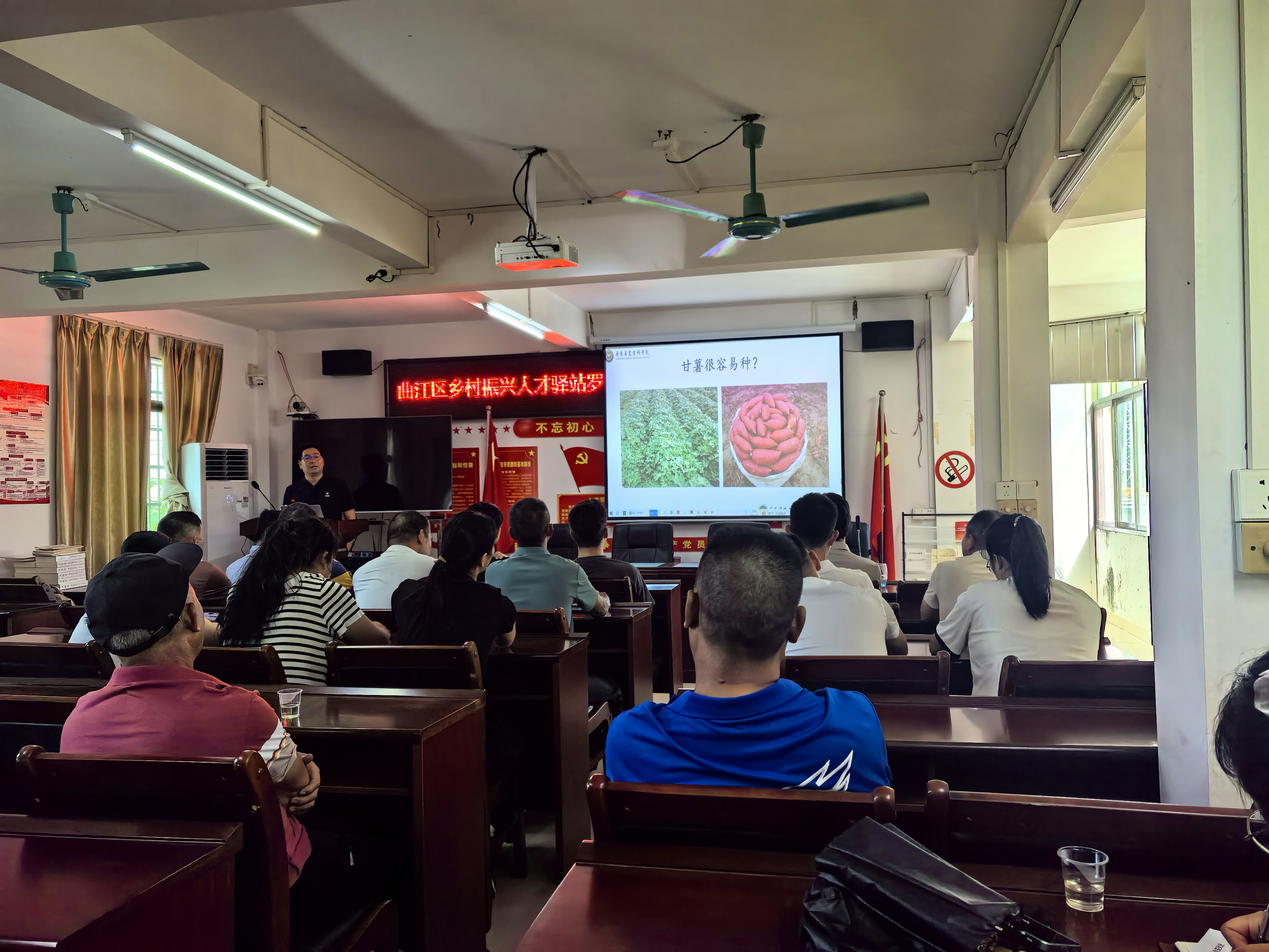 为扎实推进“百千万工程”的深入实施,科技赋能村党组织领办合作社高质量发展,近日,动科所韶关市罗坑镇科技特派员严霞团队作物所甘薯育种杨义伶副研究员,在罗坑镇新塘村委开展番薯种植技术培训及罗坑鸡养殖技术指导工作。新塘兴聚农业农民专业合作社主要骨干、番薯种植大户共20余人参加活动。