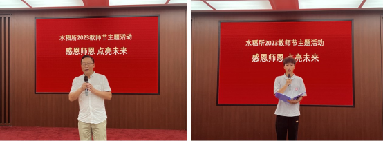 为营造我所尊师重教的浓厚氛围,在第39个教师节来临之际,9月6日上午水稻所开展2023年教师节主题活动。水稻所所长何秀英、副所长潘俊峰、所联培导师及联培生等47人出席活动,活动由学生陈静、陈洛主持。