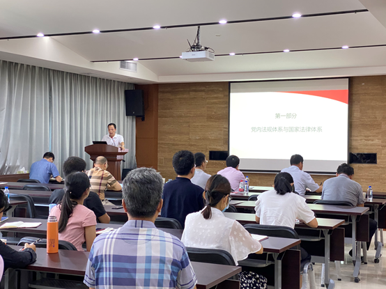 江彪同志围绕习近平总书记关于严守政治纪律坚决做到“两个维护”重要讲话精神和纪检委员履职要点两个部分作专题学习报告,阐述了监督工作的重要性,提出纪检委员履职尽责要做到“五勤”(脑勤、眼勤、耳勤、嘴勤、腿勤)。陈普照同志以《明法纪、知敬畏、守底线》为题作专题学习报告,阐述了党内法规和国家法律的联系与区别,原文学习了《中国共产党纪律处分条例》、《事业单位工作人员处分暂行规定》、《中华人民共和国公职人员政务处分法》等三个惩戒法规规定的“负面清单”,重点学习了习近平总书记关于全面从严治党的重要论述,并提出:所领导、中层干部、党务干部要带头学、做表率,纪检委员要深入学、敢监督,全体党员和工作人员要主动学、守法纪,着力营造遵守法纪、齐心干事的良好氛围。