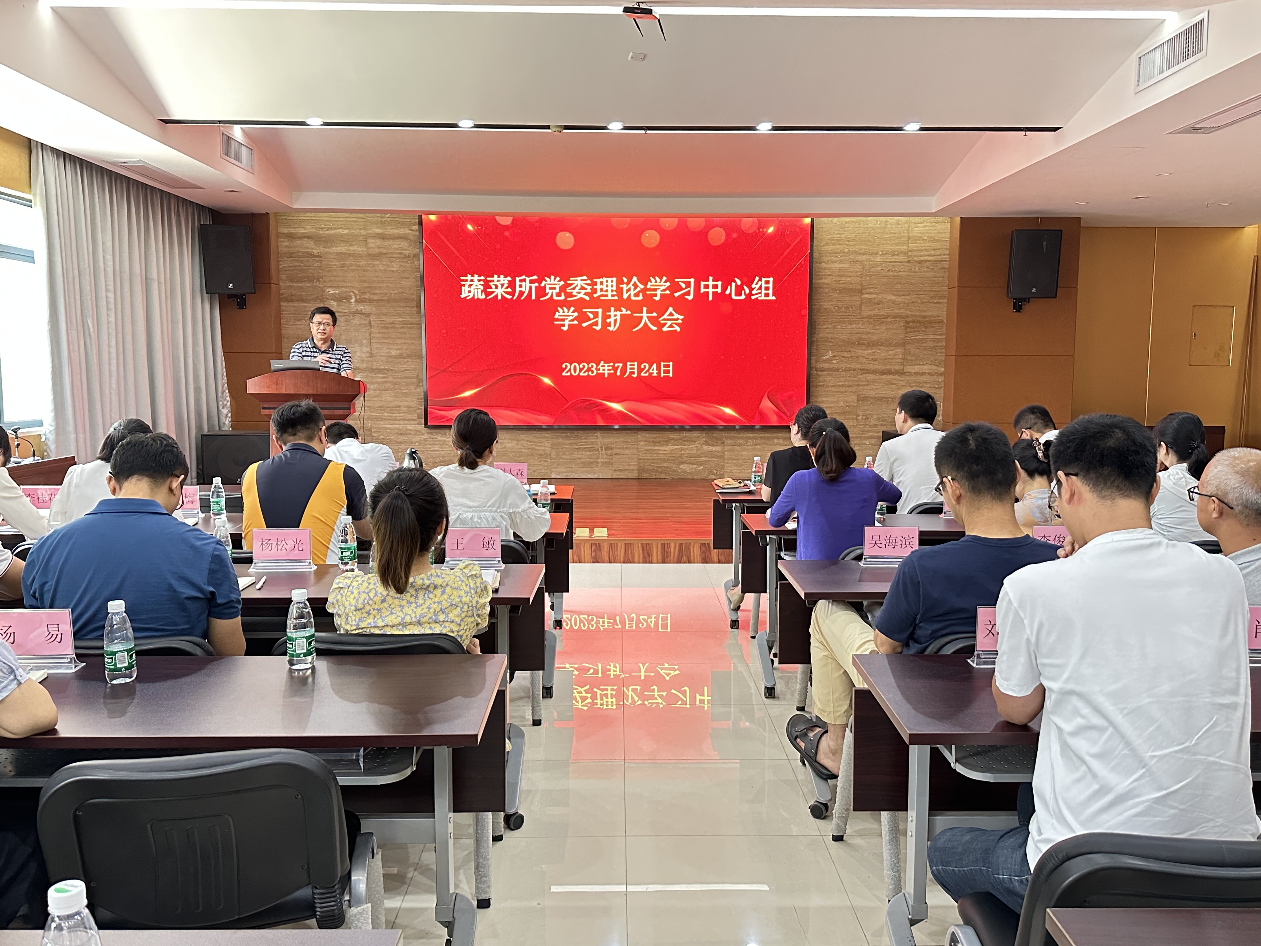 李涛以“以学促干、对标对表,提升蔬菜产业科技创新水平”为题党课,结合习近平总书记关于科技创新的重要论述精神,认真梳理、深入剖析2022年及2023年上半年蔬菜所科技创新存在问题和短板,并对标对表2023年全年目标任务,提出下半年工作举措。