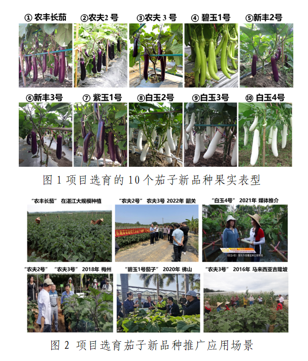 本成果育成优质、抗病、耐热华南生态型茄子新品种10个,其中“农丰长茄”和“农夫3号茄子”多次被列为广东省农业主导品种,“碧玉1号茄子”获第二十届广东种业大会重点推介品种,该品种及配套繁育技术进行了转化;项目育成品种在广东、广西、海南等华南地区以及马来西亚等东南亚国家大面积推广,其中在广东省内推广350万亩,新增总利润40.1亿元;创建了华南本地化良种繁制技术体系,实现了一年两季制种,打破了长期依赖北方单季制种的困境,大幅度提高了华南地区茄子良种的单产和质量,加速了品种推广应用进程;获得的系列茄子果色分子标记,打破了果色育种的盲目性,实现了不同果色茄子的定向选育;创新了 “线上+线下”育、繁、推、产、销一体化闭环推广模式,实现了华南型茄子良种良法的产业化应用。