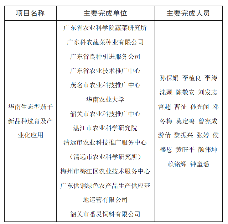 近日,广东省农业农村厅公布了2023年度广东省农业技术推广奖项目名单。我所孙保娟研究员主持完成的科技成果“华南型茄子新品种选育及产业化应用”获2023年广东省农业技术推广奖一等奖。该成果由蔬菜所主持完成,广东科农蔬菜种业有限公司、广东省良种引进服务公司、广东省农业技术推广中心等12家单位和企业共同参与完成。