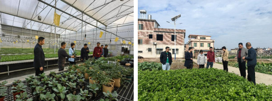 专家团到翁源县乡村振兴种苗繁育基地,了解我所品种在基地的应用情况,并就双方后续合作达成一致意见。随后,专家团到江尾镇连溪村、周陂镇高二村开展食用菌种植技术调研,就食用菌种植品种选择和栽培技术推广问题与种植户、有关负责人进行充分交流,并计划在当地开展种植试验。调研期间,专家团还详细了解了翁源县冬种蔬菜情况,并就如何提升蔬菜品质提出具体建议。本次调研为科技支撑翁源县农业高质量发展具体工作的开展奠定基础。