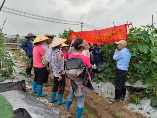 近日,我所彭庆务研究员赴白云区钟落潭镇广良白云基地进行节瓜、冬瓜夏季栽培管理现场培训,种植户共计20余人参加。