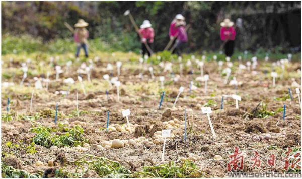 图为亚洲足球体育博彩平台 实验基地,工作人员正将试验田里的马铃薯挖起。