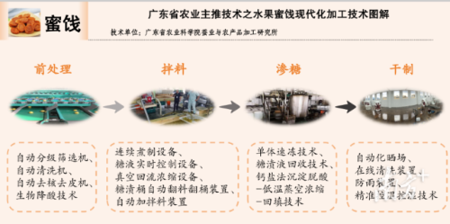 近年来,我省大力发展水果种植产业,青梅、李子和柑橘柚等水果对种植环境适应性强、产量高,在我省山区地区种植面积大,有些品种富含单宁、黄酮、有机酸等功能性成分导致直接鲜食口感欠佳,却是加工成蜜饯的优质原料,是典型的高效特色农业。这些水果产量受环境气候影响较大,管理模式较为开放,产量存在严重的“大小年”现象,价格受市场波动影响较大,存在“丰产歉收”“果贱伤农”的现状。青梅和李子等水果水分含量高、季节性强,采后短时间内易发生腐败变质,由于加工企业贮藏、保鲜及产能等方面的限制,造成大量鲜果因未及时处理而腐烂。使用该技术推广机械化自动化生产加工设备和现代化蜜饯加工工艺,不仅可以缩短生产周期,提高生产效率,而且可以稳定产品质量,提升产品营养健康价值,进一步提升产业附加值,助力山区特色果业经济,从根本上解决山区特色水果蜜饯产业难题,促进农民的增收。此外,技术的推广可提升企业生产技术水平,培育广东特色蜜饯制品规模企业,进一步带动蜜饯产业化发展。