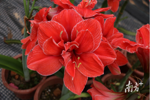 朱顶红是石蒜科多年生草本植物,原产热带美洲,是世界著名的热带球根花卉。近年来,我国朱顶红产业发展迅猛,朱顶红被国人亲切称为“注定红”。经过多年努力,省农科院选育出“红运朱顶红”新品种,已获得国家植物新品种权,并通过广东省农作物品种评定。该品种大花重瓣,呈国旗红色,花瓣边缘有明显白晕,重瓣层次分明,株型紧凑,适合做盆栽或蜡封球。目前,已开发出该品种配套的高效组培快繁和种球高效生产技术,并建立了低温诱导花期精准调控技术。