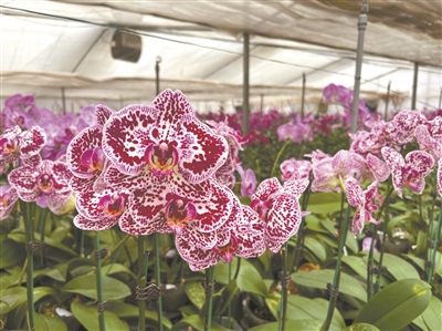 杨凤玺介绍,河源市坪围村曾是省定贫困村,在环艺所的共建帮扶下,建设了四千多平方米的兰花温室大棚基地。目前基地每年可培育8万株蝴蝶兰,组盆后销售年产值达300万元,带动村集体经济增收20万元。2021年,坪围村村委会被评为“全国脱贫攻坚先进集体”,是广东省唯一获此殊荣的村集体。