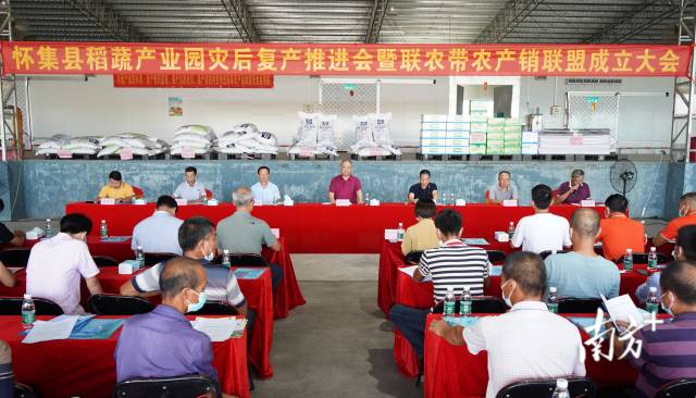 作为怀集蔬菜产业园与稻蔬产业园的牵头实施主体企业,近年来,全发公司在联农带农方面发挥了重要作用,截至2021年底辐射带动怀集及周边地区30多家农业经营主体,购销金额达3000多万元。本次强降雨使全发公司以及农户都受到了较大的影响,通过本次灾后复产推进会的契机,成立联农带农产销联盟,将充分发挥联盟的纽带作用,为成员提供全方位支持。