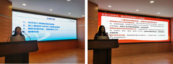 所党委副书记、纪委书记马现永以“深入学习贯彻中央八项规定精神,做好开源节流、效能提升工作”为题讲专题党课,并结合实际工作中关于科技特派员项目执行、科研项目经费使用、会议费差旅费管理等方面进行了对照剖析,要求要结合实际以学促改,从提升工作实效上检验学习成效,共同涵养良好的研究所氛围。所党委委员王丽以“扎实工作作风,强化科研管理”为题讲专题党课,紧密结合所近期科研项目管理执行情况进行讲解,希望大家能通过专题学习与研讨、案例警示教育等,将作风建设融入科研管理全流程;要突出问题导向,及时查摆科研管理风险点,开展有计划、有组织、负责任的科研;要紧跟前沿,深入一线锤炼科技创新和服务“三农”的“真本领”。