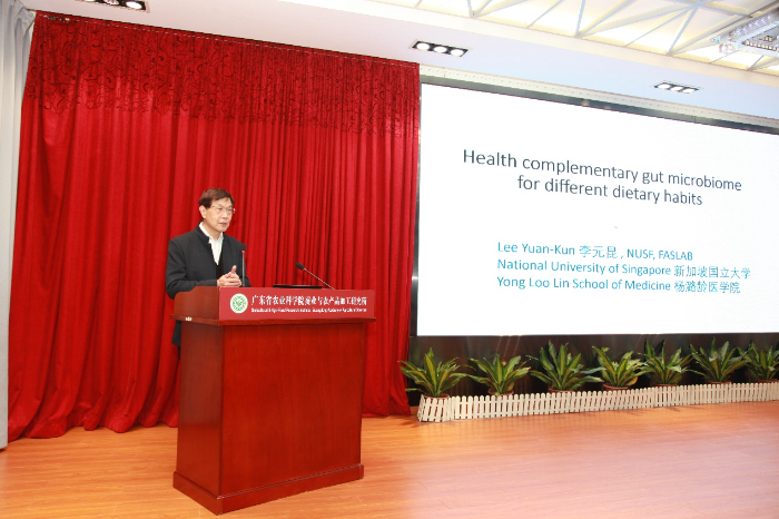 12月25日,新加坡国立大学杨潞龄医学院终身教授Lee Yuan Kun(李元昆)教授应邀到加工所交流访问并作“Health complementary gut microbiome for different dietary habits”的学术报告,足球博彩平台 副院长张名位、加工所副所长邹宇晓、科技人员和研究生80余人参加了报告会,邹宇晓主持会议。