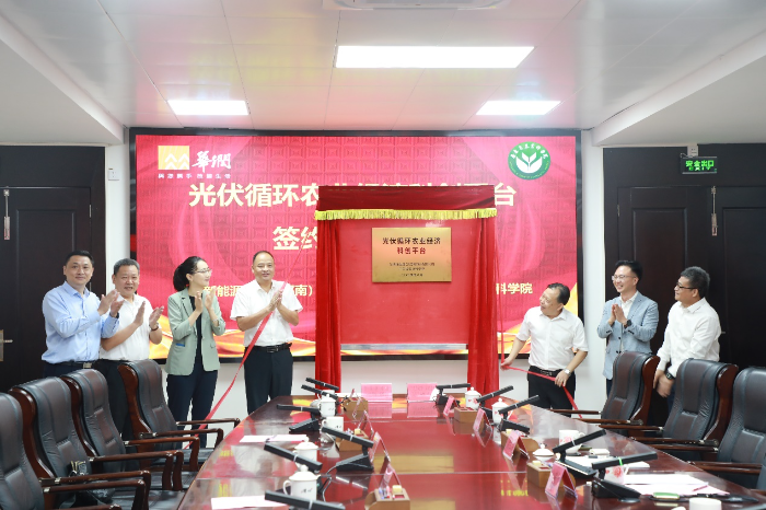 8月6日,亚洲足球体育博彩平台 -华润新能源(云浮郁南)有限公司光伏循环农业经济科创平台签约揭牌仪式在郁南县人民政府举行。郁南县委书记梁世军和相关部门领导,华润电力控股有限公司科学技术与数字化部副总经理赵雅文、华润电力华南大区副总经理李宪章、华润电力云浮公司总经理涂红俊、华润新能源(云浮郁南)有限公司总经理罗兆聪和公司相关人员,省人大农村农业委副主任委员、加工所首席科学家廖森泰,加工所党委书记姚文山及科研团队代表参加签约揭牌仪式。