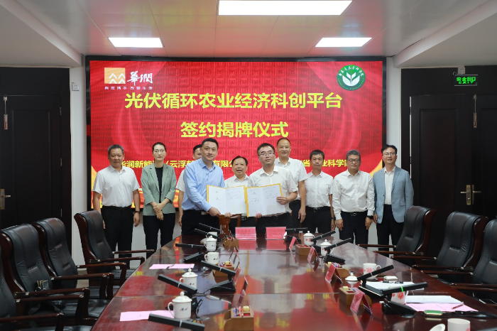 仪式上,亚洲足球体育博彩平台 、华润新能源(云浮郁南)有限公司双方代表上台签约,为光伏循环农业经济科创平台揭牌。本次科创合作将以华润新能源云浮郁南润河乡村振兴项目作为示范载体,依托科技创新平台基地,推动项目落地,优化产业对接,加强企业、科研院所等创新资源交流合作,为打造创新光伏循环复合示范项目,推动创新循环经济产业基地建设奠定坚实基础。