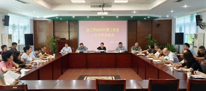 10月16日下午,加工所召开2023年第三季度工作分析交流会。所领导班子成员、各部门负责人、高级指导专家近40人参加会议。会议由所长徐玉娟主持。