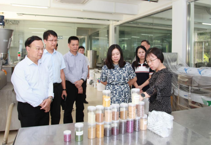 7月9日上午,广西壮族自治区乡村振兴外资项目发展中心副主任、粤桂协作办公室副主任杨媚率广西壮族自治区农业农村厅东西部协作考察团到加工所调研,广东省农业农村厅督查专员韦浩陪同。我院副院长何秀古,院科技合作部和加工所相关负责人参加调研。