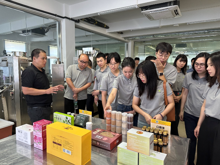 为学习贯彻落实党的二十大及二十届三中全会精神,积极落实院“需求导向、资源共享、联合研发、强企兴业”的院企合作模式,9月20日上午,广东供销绿色农产品生产供应基地运营有限公司团支部双优师徒青年干部一行20余人到加工所开展研学交流活动。加工所农产品保鲜与物流研究室叶明强研究员、水产加工研究室张业辉研究员和畜禽加工研究室林耀盛副研究员陪同对接交流。
