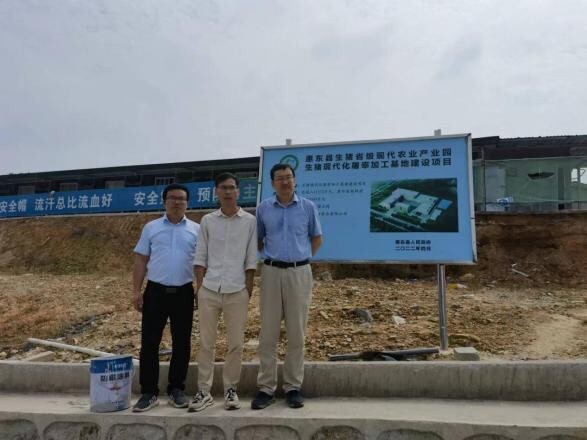 服务团与惠东县西拓食品有限公司交流屠宰场建设情况