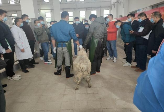 抽样与检测实操分别在粤海食品(珠海)有限公司和铭海农副产品物流中心三鸟批发市场屠宰场进行。李天宇示范了羊颈静脉采血操作,陈晶和张翩带领培训人员操作布病抗原检测卡,详细讲解了结果判定中的注意事项,进一步巩固和提高了参训人员的实操技能。