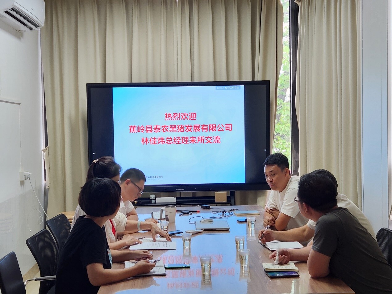 为推动粤东黑猪健康养殖专家工作站项目开展,5月22日,蕉岭县泰农黑猪发展有限公司总经理林佳炜一行到动卫所座谈交流。动卫所猪病研究室翟少伦副主任、李春玲研究员、专家工作站项目主持人李艳副研究员及部门科技骨干参加交流会议。