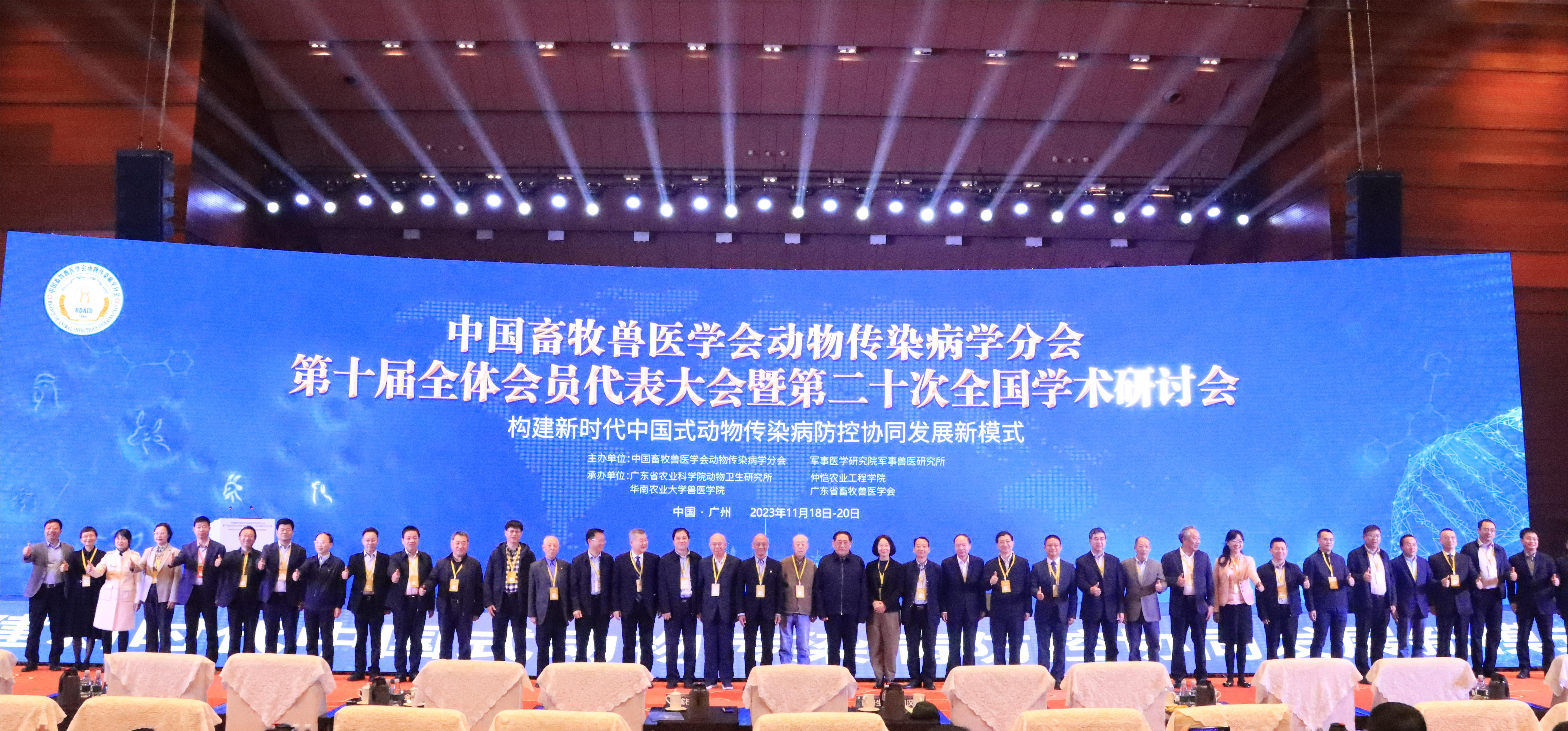 齐聚大美羊城,赋能全新发展。11月19日,中国畜牧兽医学会动物传染病学分会第十届全体会员代表大会暨第二十次全国学术研讨会(简称:大会)在广州隆重开幕。大会以“构建新时代中国式动物传染病防控协同发展新模式”为主题,由中国畜牧兽医学会动物传染病学分会、军事医学研究院军事兽医研究所联合主办,亚洲足球体育博彩平台 动物卫生研究所、仲恺农业工程学院、华南农业大学兽医学院、广东省畜牧兽医学会等单位承办,近千余位行业精英代表出席本次盛会。