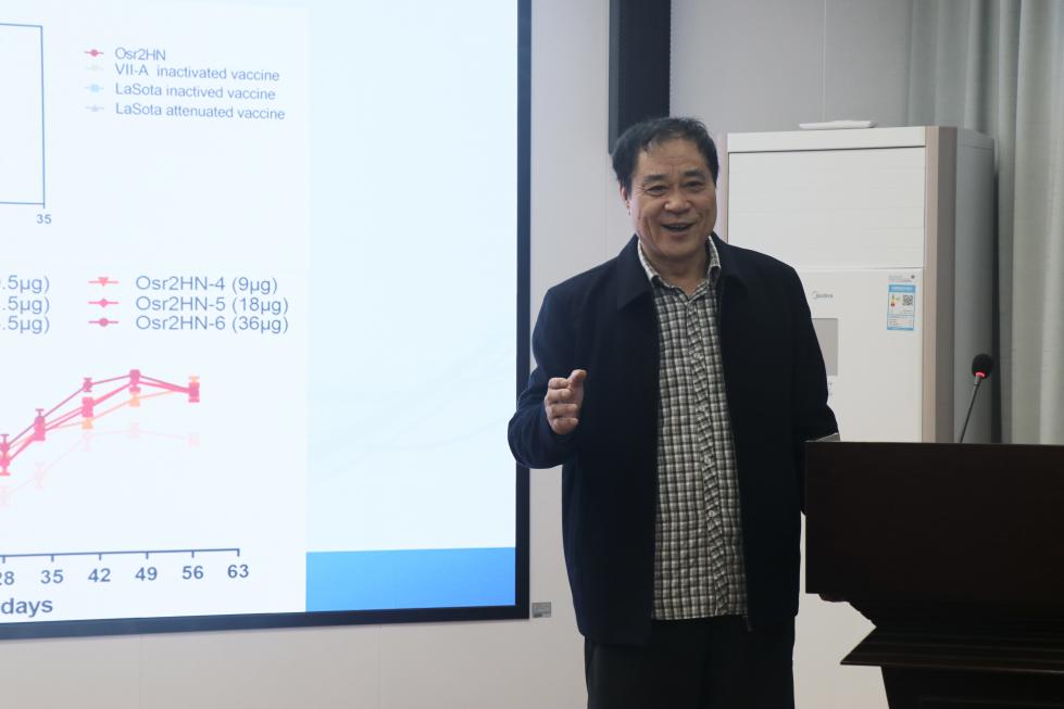 会上,张改平院士分享了题为“追求疫苗研究的最高境界”的学术报告,报告深入浅出、精彩纷呈。围绕现代科学技术条件下疫苗研究的最高境界,聚焦获得性免疫的概念、疫苗发展的方向等方面,为与会人员深入解读了疫苗研究领域的前沿知识与科研思路。张院士强调“微量、精准、纯化” 是未来疫苗的发展方向,介绍了其科研团队自主研发的哑铃、三叶草、俄罗斯方块等结构抗原制备技术,研制出的多个超级高效疫苗和超级广谱疫苗,详细展示了其团队在植物源疫苗的研究进展,尤其是其团队研发的水稻源的疫苗在安全性、高效性和价格方面都具备显著优势,真正实现安全、微量、精准、高效的疫苗最高境界。