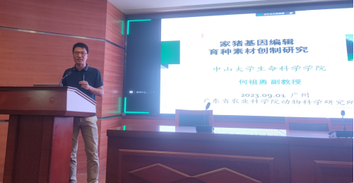 最后,何祖勇副教授以“家猪基因编辑育种素材创制研究”为题,首先介绍了基因编辑动物的概述,接着讲解了优质高产基因编辑猪、高繁殖力基因编辑猪以及抗蓝耳病基因猪的创制,分享了家猪基因编辑育种的研究现状。